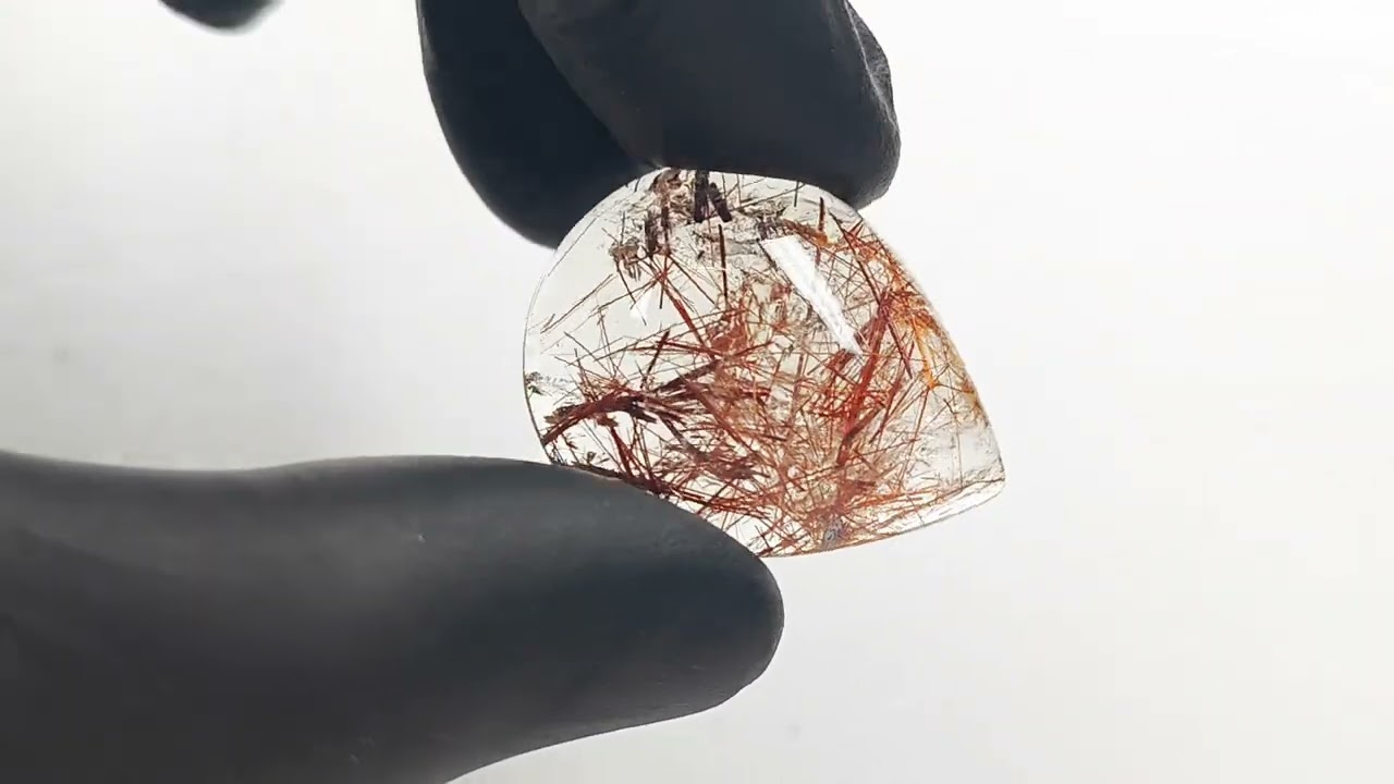 Кварц волосатик кабошон груша 33х26 мм